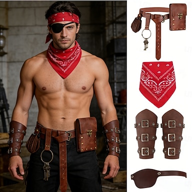 Średniowieczne Renesansowa Wymyślny kostium Akcesoria Pirat Wiking Strój na bal maskowy Męskie Wiking Piracki Halloween Karnawał Spektakl LARP Ren Faire Dla dorosłych Bransoletka Pas Eye Patch
