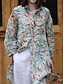 Bluzka damska z lnu imitującego bawełnę z guzikami kwiatowy print vintage casualowa z długim rękawem kołnierzyk długie bluzki codzienne niebieska letnia wiosenna jesienna zimowa