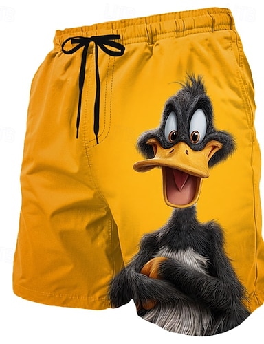Męskie Śmieszne Kaczka zwierzęta z kreskówek Bokserki kąpielowe Kostiumy kąpielowe Szorty kąpielowe Spodenki surfingowe Średni Talia Hawajskie Streetwear Plaża Boczne kieszenie Podszewka z siatki