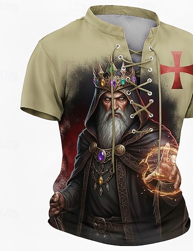 Męska casualowa koszulka z krótkim rękawem z beżowym wzorem krzyża na wiarę