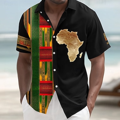 Juneteenth Męskie Mapa FREEDOM Afrykański wzór Koszula Zapinana na guziki koszula Krótki rękaw Vintage Retro Święto Lato Wiosna Wieczorne Druk 3D koszule z kołnierzykiem Czarny Burgundowy Brązowy