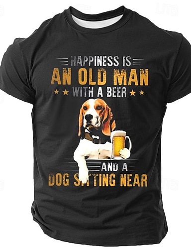 Koszulka męska z zabawnym motywem - Szczęście to stary facet piwo i pies - Koszulka o stylu życia z krótkim rękawem.