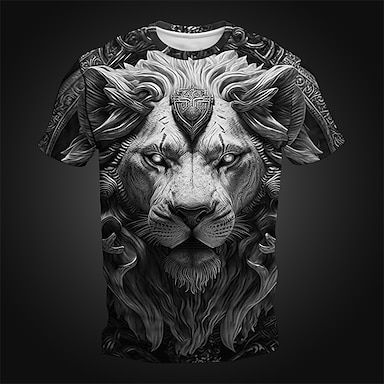 Męskie Dla obu płci Lew Wzory graficzne Podkoszulek Krótki rękaw Podkoszulek Druk 3D Półgolf Koszula Designerskie Codzienny Duży i wysoki Codzienny Święto Szary Lato Odzież S M L XL XXL 3XL 4XL