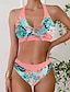 Damskie Stroje kąpielowe Bikini 2 szt Bezczelny Kostium kąpielowy Odkryte plecy Urlop Stroje plażowe Kwiaty Kantarka Bez rękawów Kostiumy kąpielowe