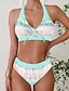 Damskie Stroje kąpielowe Bikini Kostium kąpielowy Głęboki dekolt w serek Dzianiny Wiązanie z tyłu Urlop Elegancki W Tureckie Wzory Kantarka Bez rękawów Kostiumy kąpielowe