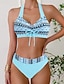 Damskie Stroje kąpielowe 2 szt Bezczelny Kostium kąpielowy Odkryte plecy Urlop Stroje plażowe Geometryczny W serek Bez rękawów Kostiumy kąpielowe
