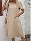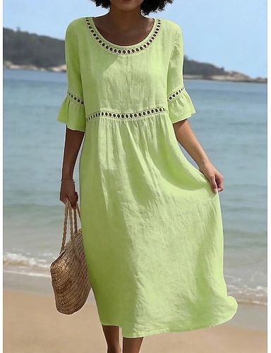 Damska sukienka midi z imitacji bawełny i lnu, sukienka typu shift, letnia, swobodna, codzienna, luźna, prosta, krótka, z okrągłym dekoltem, niebieska, żółta, zielona, beżowa, letnia, wiosenna