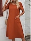 Damska sukienka midi z imitacji bawełny i lnu, sukienka o prostym kroju, letnia, codzienna, luźna, prosta, krótki rękaw, okrągły dekolt, czarna, pomarańczowa, militarna zieleń, morela, lato
