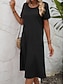 Damska sukienka midi z imitacji bawełny i lnu, na co dzień, luźny krój, prosta, rękaw 3/4, okrągły dekolt, niebieski, czarny, różowy, wino, lato, wiosna, jesień