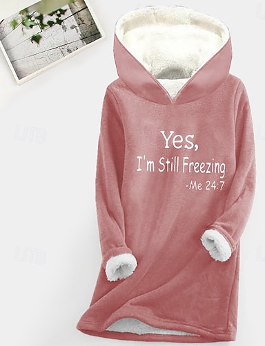 Kobieca bluza z kapturem polarowa ciepłe piżamy sherpa literą casualowe sportowe nadruk ciepłe puszyste comfort długie rękawy top elastyczny mikrofibra jesień i zima comfort oddychająca miękka tkanina