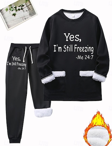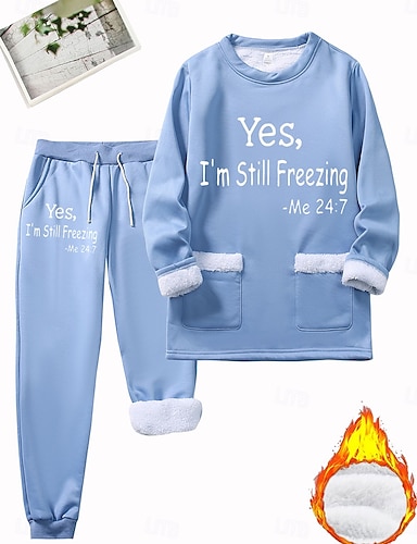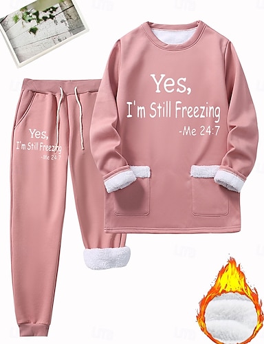 Kobieca bluza polarowa ciepłe piżamy sherpa literą codzienny casual puszyste comfort okrągły dekolt długie rękawy top elastyczny mikrofibra jesień i zima comfort oddychająca miękka tkanina