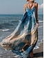 Damskie Sukienka maxi Sukienka letnia sukienka plażowa Sukienka na ramiączkach Moda Podstawowy Nowoczesny Codzienny Na zewnątrz Plaża Luźna Kwiaty Bez rękawów W serek Niebieski Lato Wiosna