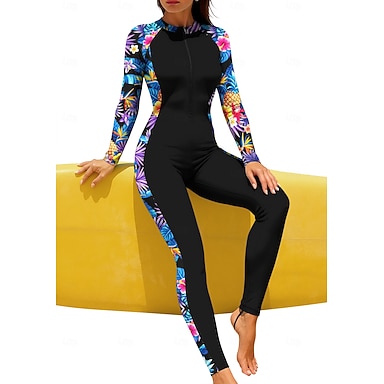 Damskie Docieplacze Strój kąpielowy Sportowe stroje kąpielowe Kwiaty Zapiąć na zamek błyskawiczny Wyjmowane wkładki Suwak przedni Ochrona przeciwsłoneczna UV UPF50+ Ultra lekki (UL) Długi rękaw