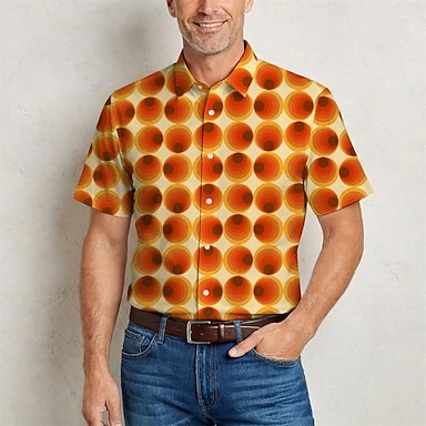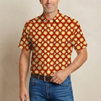 Retro / vintage Hipisowskie 1970 Koszula Krótkie rękawy Hipisowskie Geometryczny Retro Strój na bal maskowy Męskie Festiwal Muzyczny Impreza Dzienne zużycie Dla dorosłych Koszula Wiosna i lato