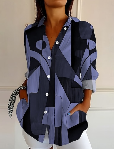 Koszula damska z lnu oddychająca lekka kwiatowy wzór vintage tropikalna stylowa długi rękaw kołnierzyk regularne bluzki do pracy codzienna patchworkowe guziki tęczowy nadruk lato wiosna jesień zima
