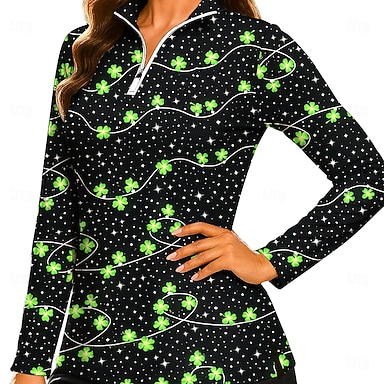 Św. Patryk Damskie Gradient Malachitowy Bluza dresowa Bluza Polo Topy Koszula Długi rękaw Zamek Nadruk Quarter Zip UPF50+ Odporny na UV Elastyczny Oddychający Siatkówka Bransoletka tenisowa Golf