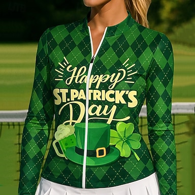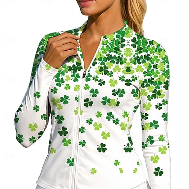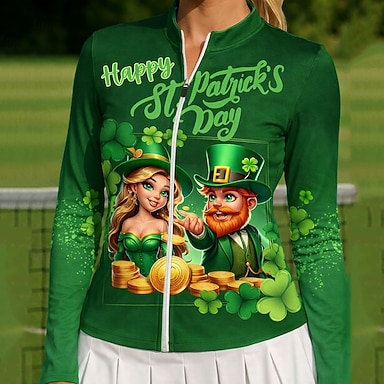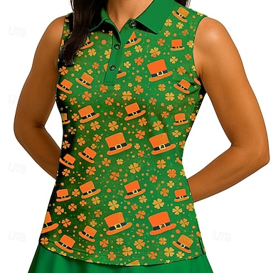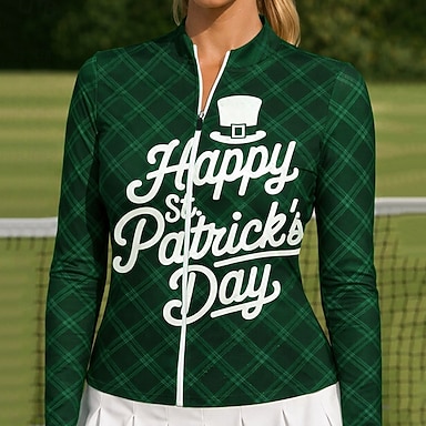 Św. Patryk Damskie Litery i cyfry Malachitowy Koszulka sportowa Koszulka polo Bezrękawnik Koszulka do tenisa Bez rękawów Zamek Kwiaty UPF50+ Odporny na UV Wysoka elastyczność Odprowadza wilgo