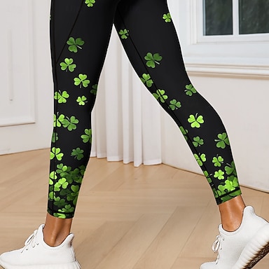 Św. Patryk Damskie legginsy do pilatesu Spodnie fitness Legginsy na siłownie Kieszenie Opłata skarbowa Boczne kieszenie Pilates Siłownia Trening w siłowni Rajstopy Getry Doły Drzewa / Listki