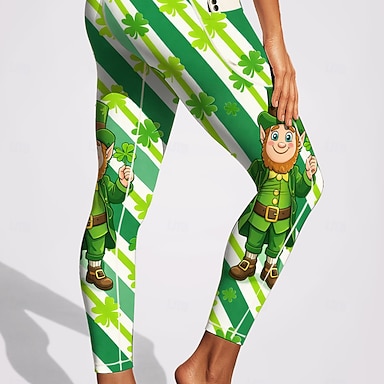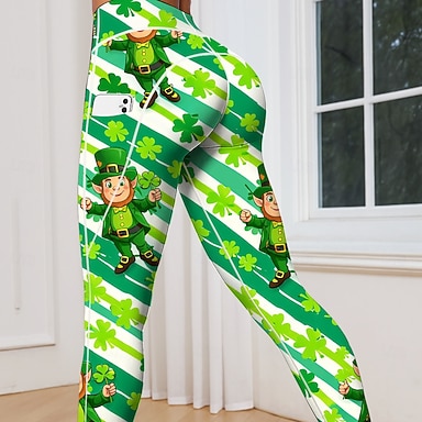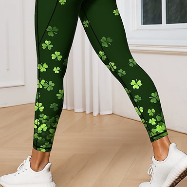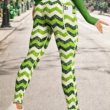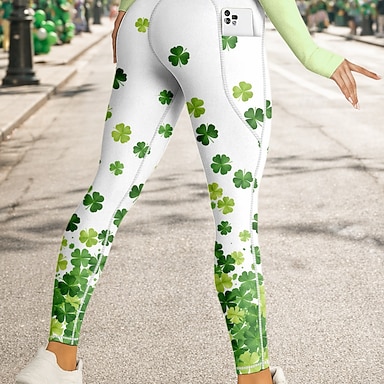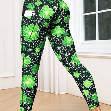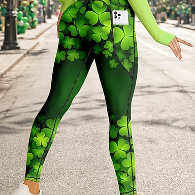 Św. Patryk Damskie legginsy do pilatesu Spodnie fitness Legginsy na siłownie Kieszenie Opłata skarbowa Boczne kieszenie Pilates Siłownia Trening w siłowni Majtki Rajstopy Getry Geometria Zielony Sport