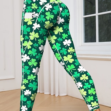 Św. Patryk Damskie legginsy do pilatesu Spodnie fitness Legginsy na siłownie Kieszenie Opłata skarbowa Boczne kieszenie Pilates Siłownia Trening w siłowni Majtki Rajstopy Getry Kwiatowy Malachitowy