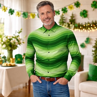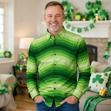 Św. Patryk 2026 Retro / vintage 1970 Koszula Koszulka Aloha Długie rękawy Hipisowskie Strój na bal maskowy Męskie Bal maskowy 4 lipca Impreza Festiwal Dla dorosłych Koszula