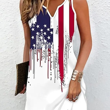 Dzień Niepodległości Patriotyczna Koszulka dla Kobiet Flaga Casual Czerwono-Biała i Niebieska Krótki Rękaw Z Dekoltem w Serek Regularne Topki Codzienne Nadruk Biały Lato