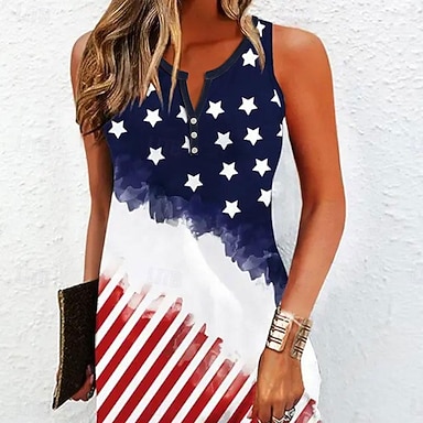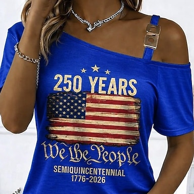 Dzień Niepodległości Patriotic Women's T Shirt Flaga Flaga Flaga Narodowa Casual Czerwono-Biało-Niebieskie Krótkie Rękawy Okrągły Dekolt Zwykłe Bluzki Codzienne Nadruk Niebieski Lato
