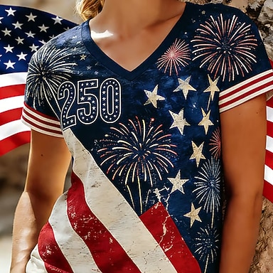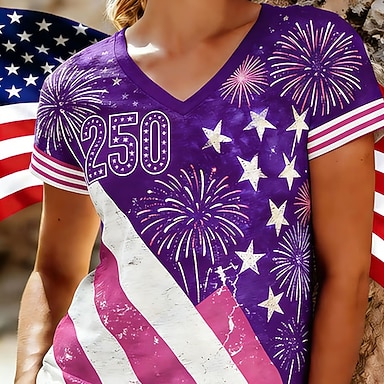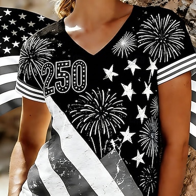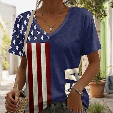 Dzień Niepodległości Patriotic Women's T Shirt Flaga Flaga Flaga Narodowa Stylowy Casual Czerwono-Biało-Niebieskie Krótkie Rękawy Dekolt V Zwykłe Bluzki Codzienne Czarny Lato Wiosna