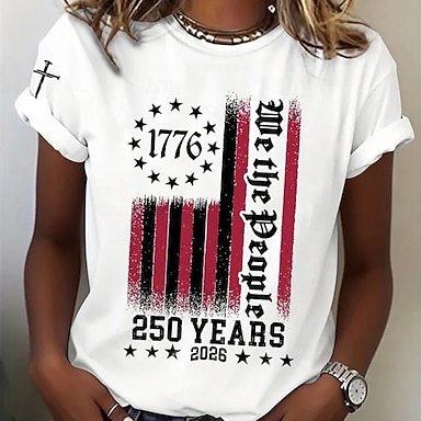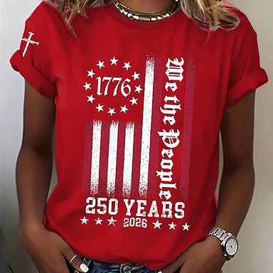 Dzień Niepodległości Patriotic Women's T Shirt Graficzna Flaga Flaga Vintage Stylowy Klasyczny Czerwono-Biało-Niebieskie Krótkie Rękawy Okrągły Dekolt Zwykłe Bluzki Codzienne Nadruk Czerwony
