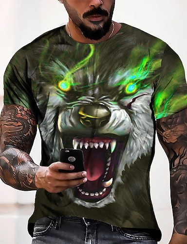 Dla chłopców 3D Graficzny Lew Podkoszulek T-shirt Krótki rękaw Lato Wiosna Moda Podstawowy Dzieci 4-12 lat Półgolf Na zewnątrz Codzienny Regularny