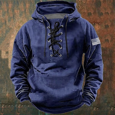 Męskie Amerykańska flaga USA Jeleń Bluza z Kapturem Bluzy Moda Klasyczny Długi rękaw Półgolf Na zewnątrz Łowiectwo Niebieski Brązowy Ściągana na sznurek Jesień Zima Projektant S M L XL XXL XXXL