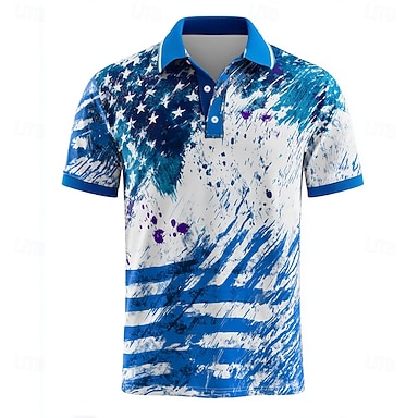 4 lipca 2026 250. Dzień Niepodległości Męskie Amerykańska flaga USA Bluza polo Krótki rękaw Wieczorne Na co dzień / Sportowy Sport i turystyka Athleisure Druk 3D Lato Niebiesko-biały