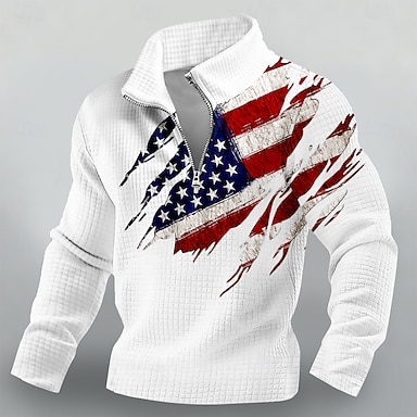 Męskie Graficzny Amerykańska flaga USA Polar Bluza z kapturem Bluzy Moda miejska Codzienny Elegancki Klasyczny Półgolf Na zewnątrz Urlop Wyjściowe Czarny Czerwony Zielony Szary Drukowanie Jesień Zima
