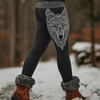 Damskie Wiking Getry Aktywny Urlop Moda Pełna długość Wysoka talia Graficzny Nadruk Wysokie cięcie Komfort Na zewnątrz Wygodny Elastyczny Na zewnątrz Festiwal Czarny Lato Wiosna Zima Rurki