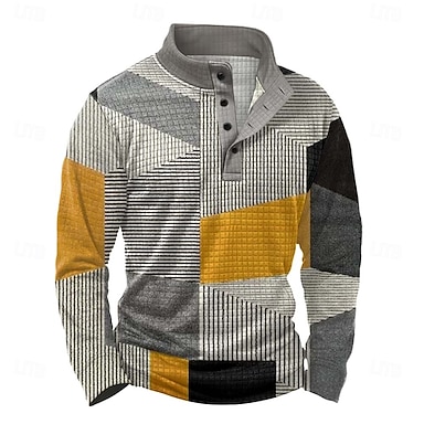Męskie Geometryczny Kratka Gofrowana Bluzy Codzienny Klasyczny Kołnierz stawiany Na zewnątrz Dom Praca Prezent Niebieski Błękit jeziora Żółty Pomarańczowy Guziki Jesień Zima Projektant S M L XL XXL