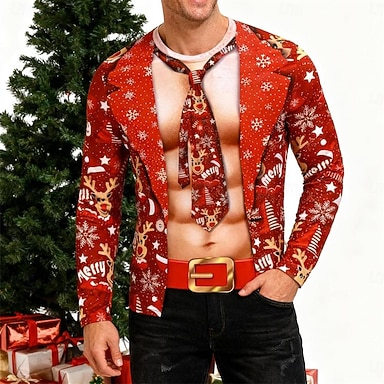 Święta Męskie Choinka Zabawny slang Podkoszulek Długi rękaw Podkoszulek Druk 3D Półgolf Koszula Urlop Designerskie Ulica Codzienny Czarny Biały Czerwony Lato Wiosna Jesień Odzież S M L XL XXL XXXL