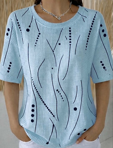 Bluzka Damska Asymetryczny Krój Podstawowy Abstrakcyjny Wzór Krótki Rękaw Długie Top Okrągły Dekolt Codzienny Srebrny Czarny Biały Niebieski Khaki