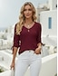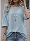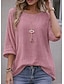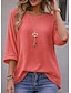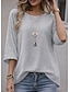 Damskie Oversize Podkoszulek Koszulki Jednokolorowe Zabytkowe Elegancki Codzienny Rękaw 3/4 Półgolf Zwykłe topy Codzienny Wyjściowe Biały Rumiany róż Czerwony Zielony Szary Lato Wiosna