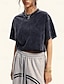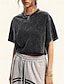 Damskie Oversize Podkoszulek %100 Pamuk Topy w stylu vintage prane Zabytkowe Elegancki Codzienny Krótki rękaw Półgolf Zwykłe topy Codzienny Wyjściowe Czarny Lato Wiosna