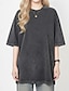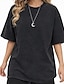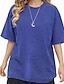 Damskie Puszysta Oversize Podkoszulek %100 Pamuk Topy w stylu vintage prane Moda Klasyczny Codzienny Krótki rękaw Półgolf Okrągły dekolt Zwykłe topy Codzienny Wyjściowe Indygo Czarny Fioletowy Kawowy