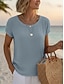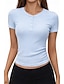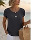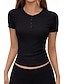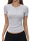 Damskie Drobna Koszulka sportowa Top dopasowany Zakrzywiony brzeg Jednokolorowe Zabytkowe Elegancki Codzienny Krótki rękaw Henley Zwykłe topy Codzienny Sport Wyjściowe Niebieski jesion Czarny Rumiany