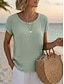 Damskie Podkoszulek Guziki Równina Moda Krótki rękaw Okrągły dekolt Zwykłe topy Codzienny Weekend Niebieski Czarny Rumiany róż Brązowy Zielony Lato