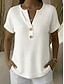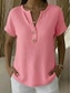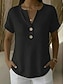 Damskie Podkoszulek Guziki Równina Codzienny Krótki rękaw W serek Zwykłe topy Codzienny Weekend Biały Rumiany róż Zielony Jasnoniebieski Lato