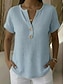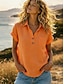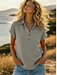 Damskie Podkoszulek Koszulka z lnu bawełnianego Koszulka Guziki Równina Moda Elegancki Klasyczny Krótki rękaw Półgolf Zwykłe topy Codzienny Wyjściowe Weekend Niebieski Biały Żółty Zieleń wojskowa