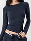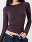 Damskie Drobna Podkoszulek Y2K Top dopasowany Tunika Jednokolorowe Elegancki Seksowny Długi rękaw Z odsłoniętymi ramionami Crop Topy Codzienny Wyjściowe Jasnoszary Wiosna Jesień