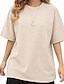 Damskie Puszysta Oversize Podkoszulek Koszulki %100 Pamuk Jednokolorowe Elegancki Podstawowy Codzienny Krótki rękaw Półgolf Okrągły dekolt Zwykłe topy Codzienny Wyjściowe SAND Czarny Biały