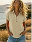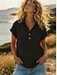 Damskie Podkoszulek Letnie szczyty Guziki Jednokolorowe Elegancja Zabytkowe Moda Krótki rękaw Półgolf Zwykłe topy Codzienny Na zewnątrz Streetwear Jasnoniebieski Biały Żółty Rumiany róż Granatowy