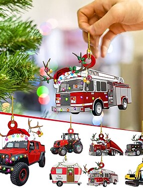 Christmas Tree Hanging Truck 2D Acrylic Decoration Flat Pendant Christmas Excavator Decoration Pendant Vintage Farmhouse Decoration
