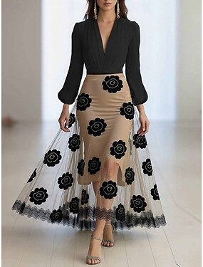 Women's Black Spring Fall Maxi Dress Sheath Dress A Line Dress Party Formal Formal Party Regular Fit Floral V Neck