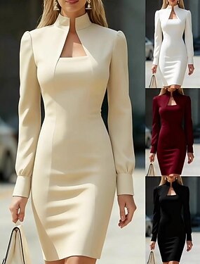 Women's Mini Dress Work Dress Sheath Dress Elegant Fashion Modern Office Regular Fit Plain Long Sleeve Stand Collar Black White Wine Apricot Summer Spring Fall